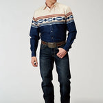 Roper 1906 Distressed Aztec Border (Navy) - Men's Western Shirt