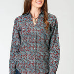 From the Amarillo Collection - Red River, this women’s long sleeve western shirt captures a classic paisley design with rich color and timeless appeal. Crafted from 100% cotton, it’s soft, breathable, and perfect for all-day wear.