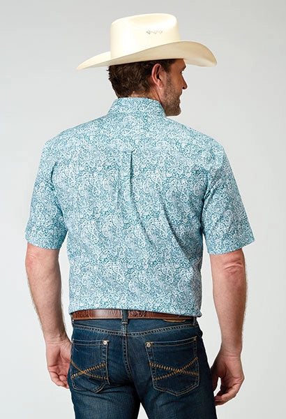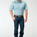 Roper 1944 Stretch Paisley (Blue) - Men's Short Sleeve Shirt