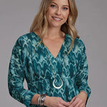Roper 2135 Feather Print (Teal) - Women's Dress