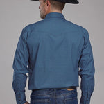 Designed with a one-point curved front yoke into the neck, one-point curved back yoke, and two one-point pockets with curved flaps, this shirt features a striking blue diamond print. Signature Roper "R" embroidery adds a classic western detail, completing the timeless appeal of this versatile long sleeve shirt.