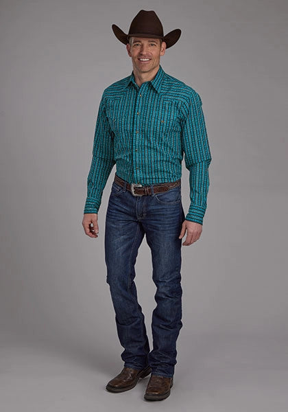 Roper 2170 Micro Aztec Print (Blue) - Men's Western Shirt