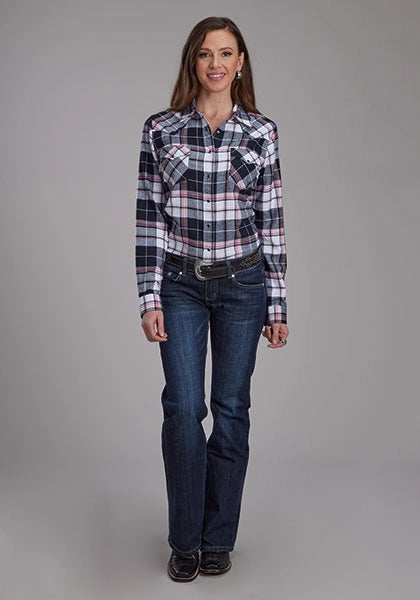 This women's unlined flannel shirt from Roper Outerwear delivers a relaxed, comfortable style crafted from 100% cotton. The soft brushed twill makes it perfect for layering or wearing on its own during cooler days, while maintaining a casual western aesthetic.