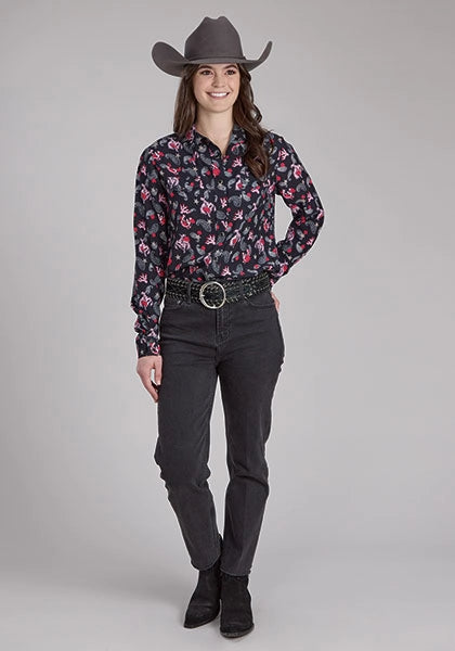 Roper 2225 Riders Print (Black) - Women's Western Blouse