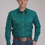 Designed with attention to detail, the shirt features a lattice medallion allover print that gives it a bold, distinctive style. The curved front and back yokes create a tailored western silhouette, while the one-point flap pockets combine function and flair. Signature Roper "R" embroidery on the chest adds authenticity, making this shirt a versatile choice for casual outings, rodeos, country concerts, or any occasion where western style shines.