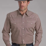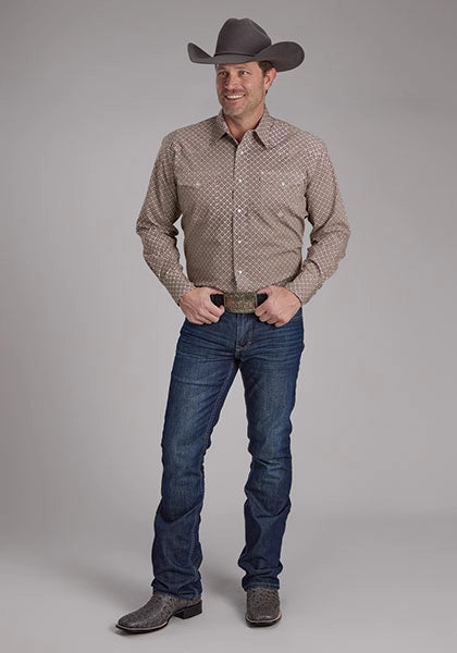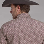 Crafted in a rich wine-colored four-point foulard print, this shirt showcases subtle, eye-catching patterning perfect for both casual and dressier western occasions. Curved front and back yokes provide a flattering fit, and the two one-point pockets with curved flaps add functional detail. Finished with signature Roper "R" embroidery, it’s ideal for rodeos, country outings, or everyday wear with standout style.