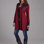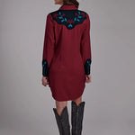 Designed with contrast piping and satin trim on the collar and back yoke, this dress also includes 5 snap caballero cuffs and expertly placed bust and back darts to enhance the silhouette. With a 35-inch shoulder-to-hem length, it’s perfect for pairing with boots or heels for both casual and special western-inspired occasions.