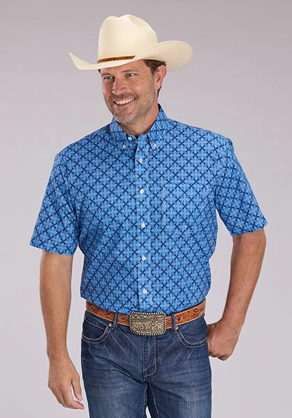 Roper 2497 Ribbon Medallion (Blue) - Men's Short Sleeve Shirt