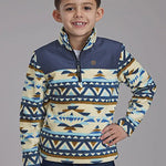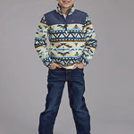 Roper Boy's Aztec Print Microfleece Pullover (Cream/Navy) - Children's Jacket
