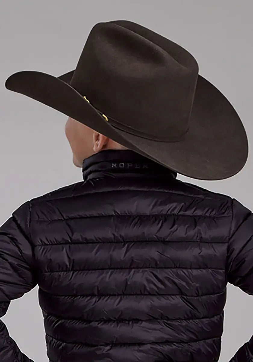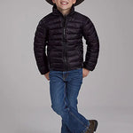 This black Roper puffer coat is just right for a little cowboy facing cooler weather. Lightweight yet warm, it keeps him cozy without slowing him down. The reflective zipper pulls and sturdy stand-up collar add a touch of practicality, while the zippered pockets are perfect for stashing little treasures he finds along the way.