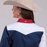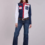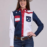 This women’s long sleeve colorblock and pieced shirt from the Americana Collection combines classic western style with playful, patriotic detail. Crafted from 100% cotton, it offers a soft, breathable feel while showcasing a distinctive design that’s perfect for casual outings or western-inspired occasions.