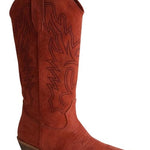Kit Laser in cognac faux suede is a stylish and versatile boot that combines western-inspired design with modern comfort. The 12" shaft features a detailed western laser pattern, adding texture and visual interest to the boot. The medium square toe gives a contemporary look while ensuring a comfortable fit for all-day wear.
