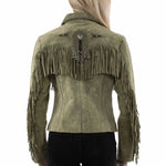 Decorative conchos with beaded fringe accents and carefully placed stud and bead detailing add depth and character, reflecting Western craftsmanship and heritage. Fully lined for comfortable wear, this jacket is designed to make a statement whether paired with denim, boots, or worn as a standout piece for festivals, rodeos, or everyday Western-inspired outfits.