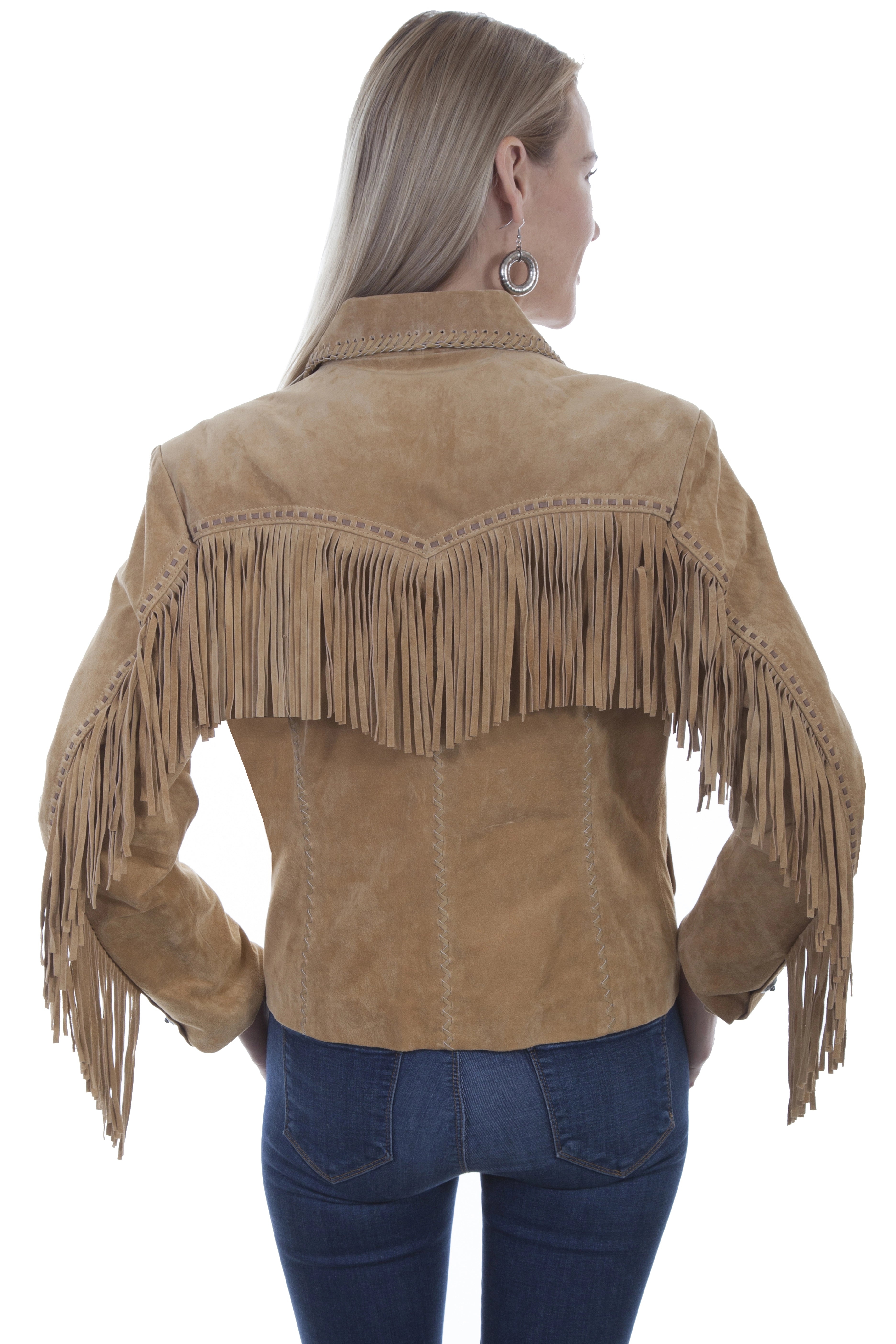 This Scully Fringe Suede jacket captures the spirit of classic Western wear with soft suede leather and flowing fringe that moves with you. Fringe yokes on the front and back, along with fringe down the sleeves, reflect traditional frontier styling that has long been associated with rodeos, ranch life, and Western heritage.