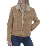 Practicality meets style with two chest flap pockets and waist cinch snaps, allowing for a tailored fit that flatters any silhouette. This jacket embodies the spirit of western heritage while offering a contemporary edge, making it a versatile addition to any wardrobe.