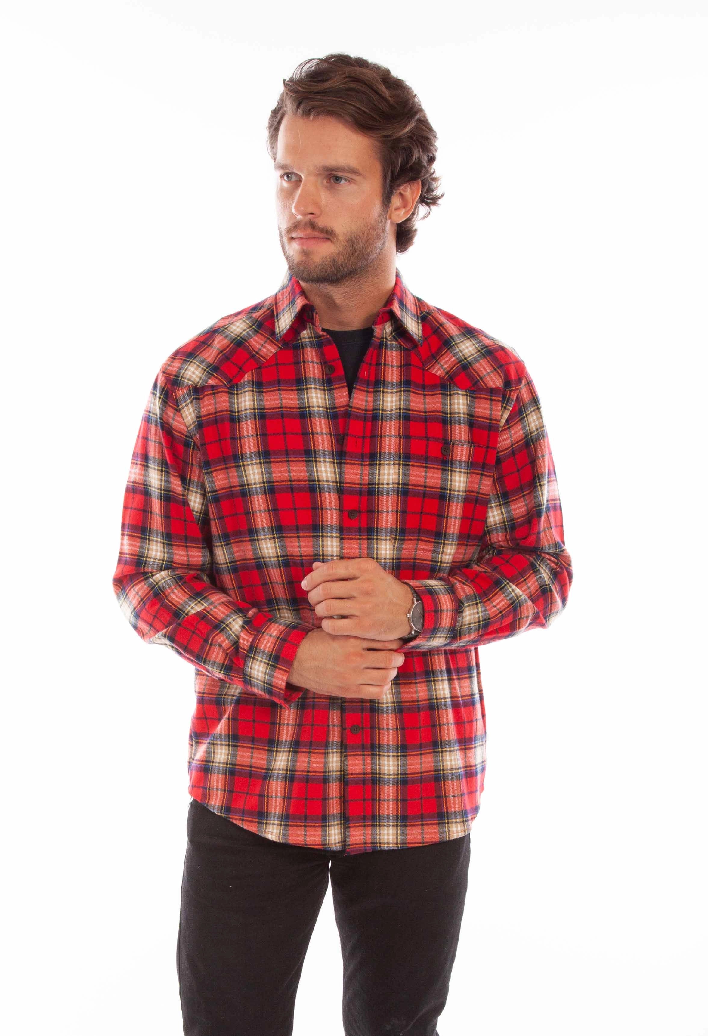The Scully Western Yoke Plaid Flannel Shirt is a dependable choice for everyday wear, offering a timeless plaid design with authentic western styling. Made from 100% cotton flannel, this shirt delivers a soft yet durable feel that is comfortable enough for all day wear while standing up to regular use. The full button front and traditional western yokes give it a classic look that never goes out of style.