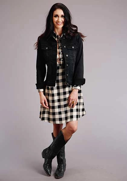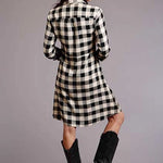 The Stetson Women's Buffalo Plaid Shirt Dress brings classic Western charm to a timeless plaid design. Made from soft rayon for a fluid, comfortable fit, this pullover dress features a half placket that meets a high waist seam for a flattering shape. Thoughtful details like bust darts and gathered back yokes add to its tailored look while maintaining easy wearability.