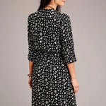 This Stetson Southwestern Ditzy Print Dress showcases a charming and playful pattern on soft, breathable rayon twill. Designed with a flattering elastic waist, the dress features a straight back yoke with gathers, long sleeves with elastic cuffs, and a stand collar with a subtle V-neckline for a polished finish.