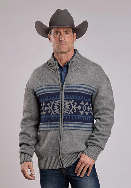Stetson 2776 Aztec Border (Grey) - Men's Wool Sweater