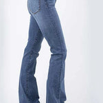 The Stetson High Waist Flare Jean brings a polished yet classic Western look with a flattering silhouette. Made from a cotton-spandex blend, these jeans offer just the right amount of stretch for comfort while maintaining structure and style. The high waist design sits perfectly at the waist, creating a sleek shape that enhances the fit through the thigh and knee.