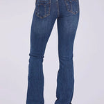 These high waist flare jeans offer a modern take on Western style, crafted from a soft cotton-spandex blend for comfort and stretch. The high-waisted fit and slim silhouette through the thigh with a flare at the leg opening create a flattering, elongating effect that pairs beautifully with boots or heels.