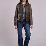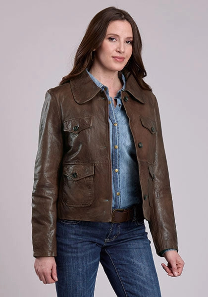 Stetson Cropped Button Front (Brown) - Women's Lamb Leather Jacket