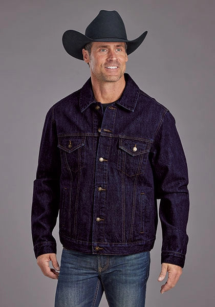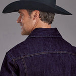 The Stetson Original Rugged Men’s Denim Jacket delivers timeless Western style with a sturdy, durable construction. Made from 100% cotton, this dark denim jacket features classic gold stitching for a sharp, authentic look. Straight yokes on the front and back create a structured silhouette, while the single point curved pocket flaps and welt hand pockets provide functional storage and a polished finish.