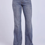 The Tin Haul Ella Fit Jean offers a flattering fit that sits just below the waist, with a moderately fitted thigh and flared leg opening for a stylish, feminine silhouette. The bootcut-inspired flare pairs perfectly with your favorite boots or heels, making these jeans a versatile choice for casual outings, concerts, or nights out.