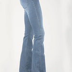 The Tin Haul 825 Harlow Fit Skinny Flare in light wash is made for the modern cowgirl. With a high waist, sleek fit through the thigh, and a flare leg, these jeans flatter in all the right places. The light wash and subtle sanding add a laid-back charm, while the pocket-free front keeps it smooth and stylish.