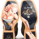 Comfort and quality are at the forefront of this design. A cushioned insole ensures all-day wearability, and the premium leather lining delivers a smooth, long-lasting fit. The transparent Obvious Pin Up Girl Sole ties the look together, giving this boot a distinctive, thematic finish that turns heads with every step.